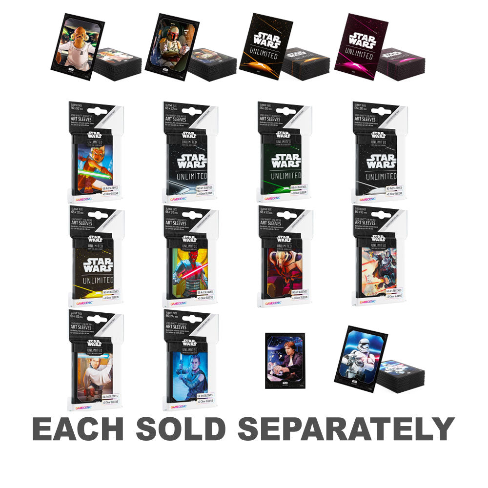 - Protect your favorite Star Wars Unlimited cards with sleeves that feature iconic art.