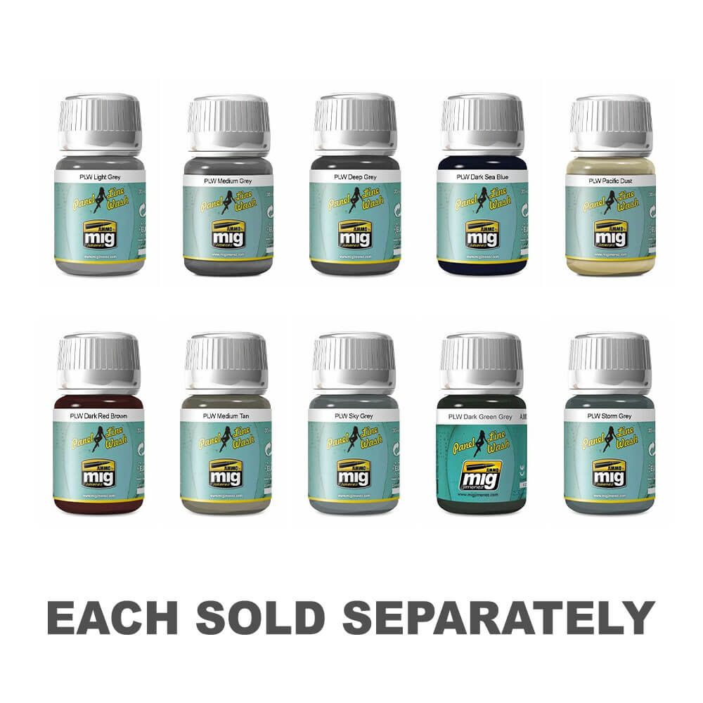 Lavage du panneau pour les avions américains de la Seconde Guerre mondiale dans le Pacific Theatre of Operations, peints en bleu foncé tels que Corsairs, Hellcats et de nombreux autres avions Marine Corp. & Naval. Il est également très utile pour tout sujet de science-fiction, navires ou véhicules peints en bleu. Notre gamme de lavage de lignes de panneau est spécialement conçue pour créer des lignes de panneaux lavées souples dans des avions, et est également parfait pour d'autres véhicules où nous voulons obtenir des effets subtils tels que des sujets de science-fiction, des navires et des trains.
