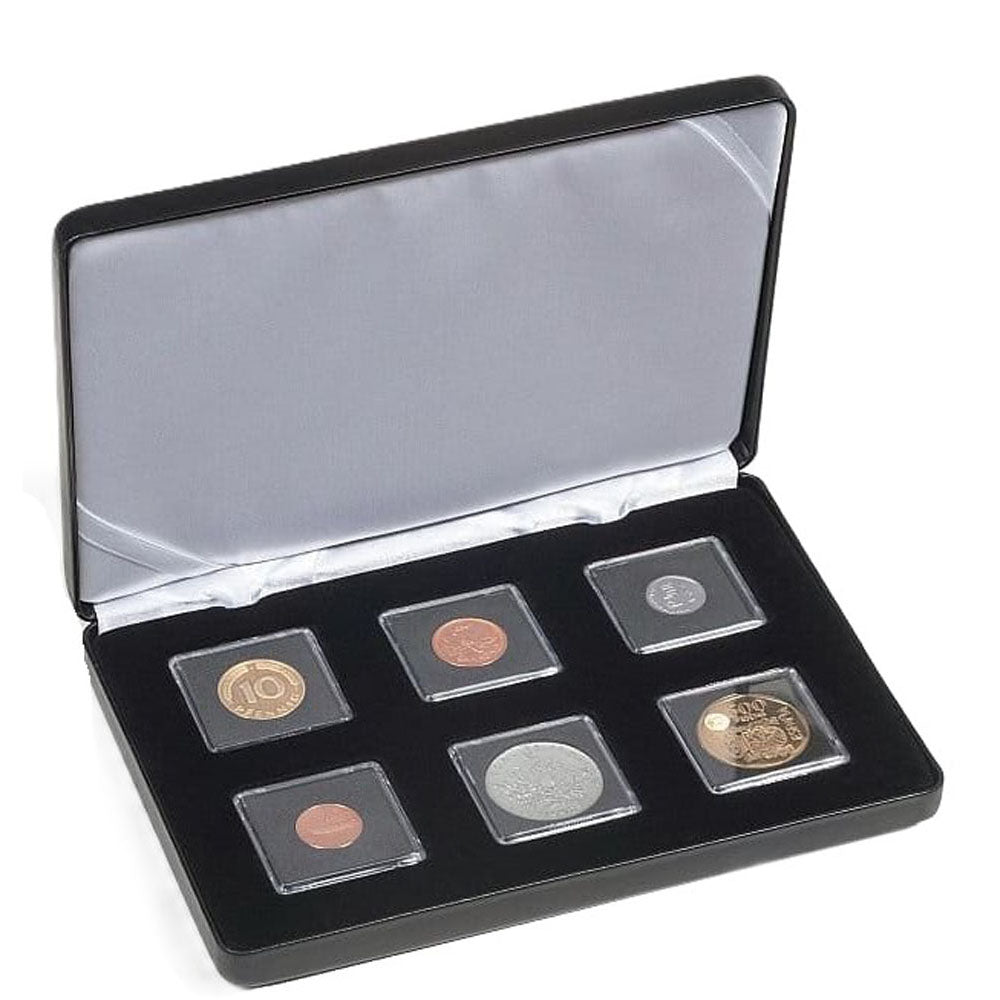 Oplev en kompakt, men alligevel stilfuld løsning til opbevaring af dine mønter med Leuchtturm Nobile Quadrum Mini Capsule! Udformet med præcision og omhu giver denne slanke sorte kapsel maksimal beskyttelse og synlighed for dine mønter. Hver mønt ligger sikkert inden for sit eget rum, hvilket sikrer let adgang og konservering. Sig farvel til rodede rum og hej til organiseret elegance - med denne minikapsel kan du vise dine mønter med stolthed og selvtillid. Løft dit møntopbevaringsspil, og oplev indbegrebet af sofistikering med Nobile Quadrum Mini Capsule!