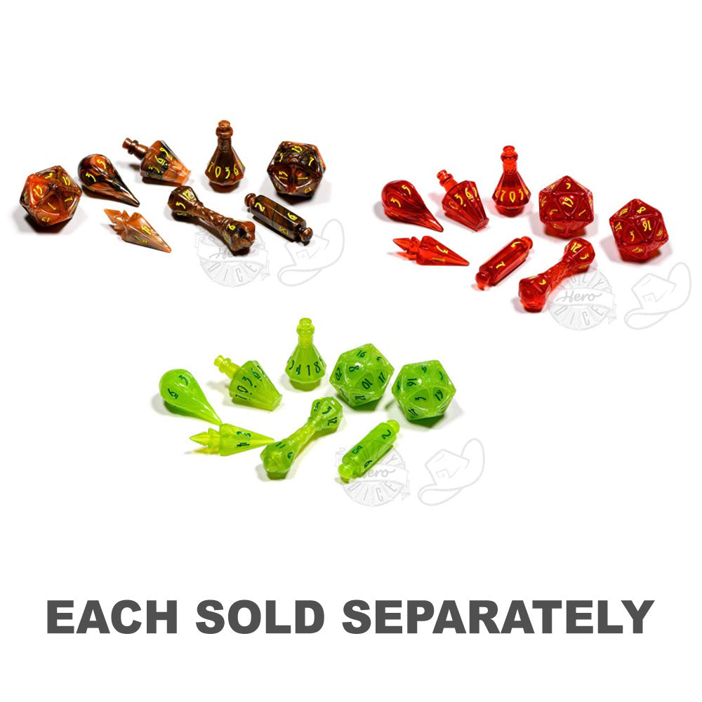 Kun de modigste sind overvejer mysterierne om arkane. Støbt en syntese af brugerdefinerede terninger til dine foretrukne RPG'er, der vil have et respekteret sted i din samling. Hver PolyHero Wizard 8 DICE -sæt leveres med 8 terninger: D4 Bolt, D6 Fireball, D8 Scroll, 2 D10 Potions, D12 Wand og 2 D20 Orbs