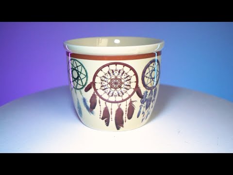 - Fjeret Dreamcatcher-design på en cremefarvet skål.