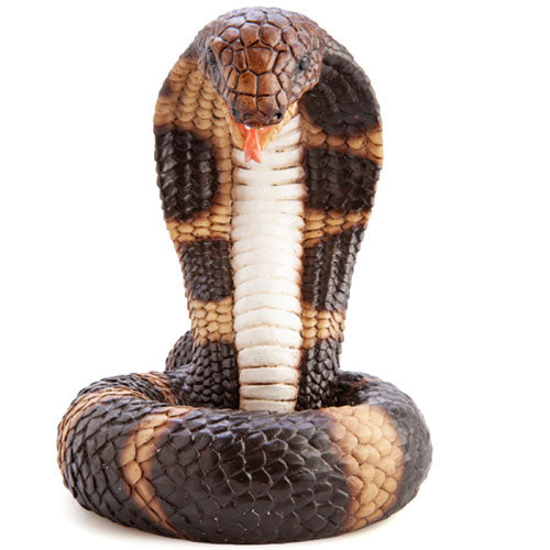 • Die Kobra ist in ihrer ikonischen Bedrohungsdarstellung zusammengerollt und erhaben