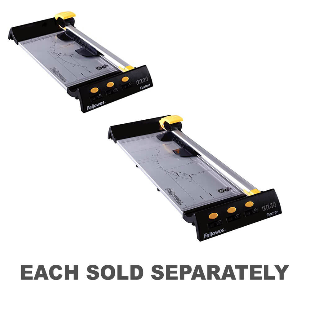 Electron A4 is designed for frequent use in the small office, home office environment. It has a 10 sheet cutting capacity and uses encapsulated SafeCut cartridges which only expose the blade when trimming, ensuring greater safety in use. It is supplied with 4 blade types (straight, wavy, perforated and fold) which can be stored integrally within the base of the machine and a paper clamp minimises paper movement, enabling a more accurate finish. An LED light projects a straight line which acts as a guide for straight cuts. The Electron A4 paper trimmer is manufactured with a durable metal base