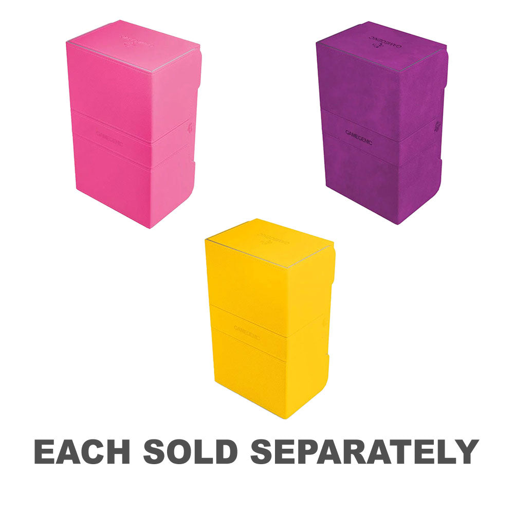 Two removable card holders keep up to 200 double-sleeved cards in this large and extremely robust deck box. The Stronghold is covered with elegant Nexofyber material, with soft microfiber inside, and also contains an accessories drawer. Just like other Convertible products, its flaps are removable and can be clipped to the back side of the box. Powerful magnets ensure a safe closure. Completely removable, interchangeable flaps and inner card holders offer Mix & Match customization options.