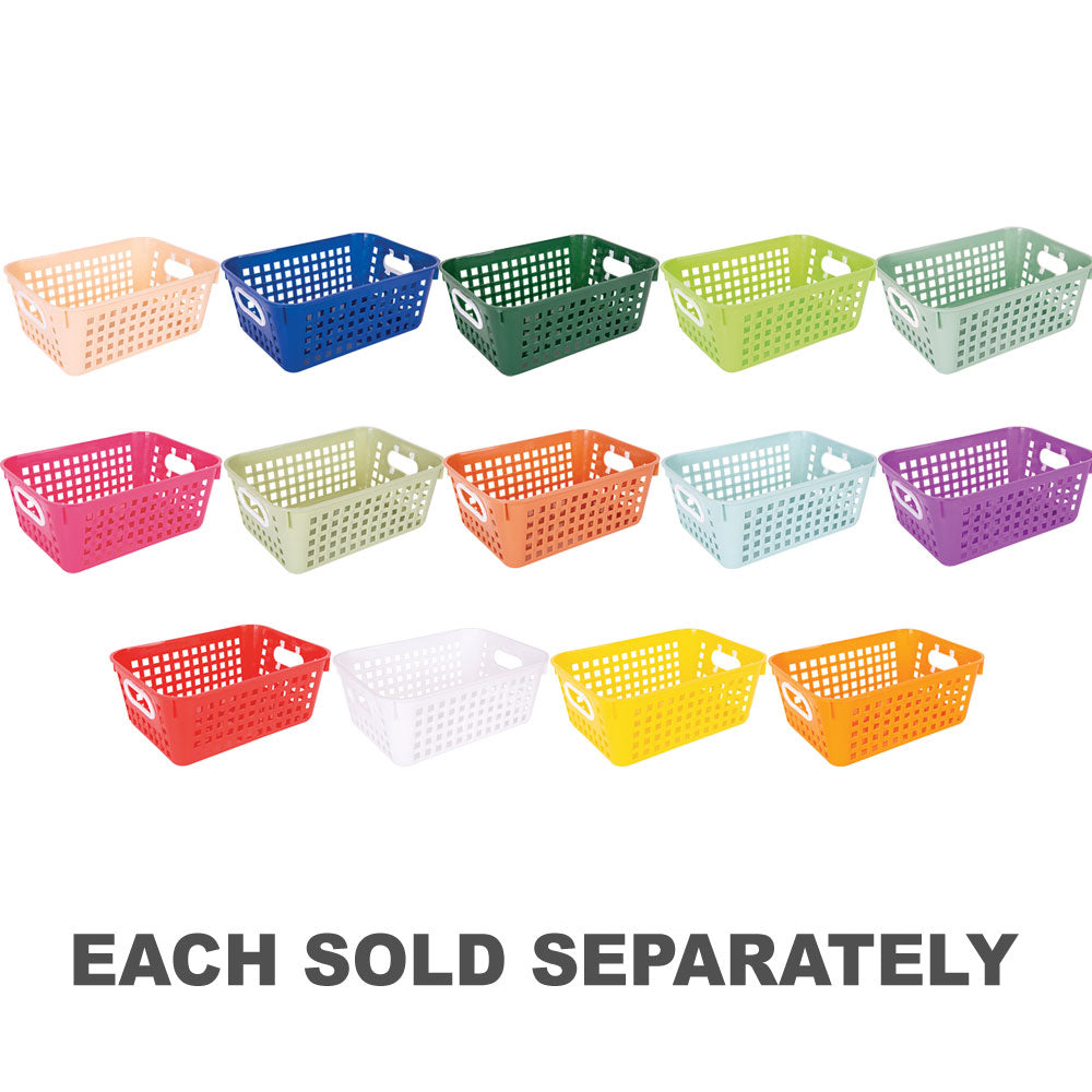 Keeping your classroom supplies, student resources, and teaching materials organised has never been easier. These Large Classroom Storage Baskets provide a durable and practical storage solution for teachers, schools, and early learning centres, ensuring materials are always accessible and easy to transport. Built for busy classroom environments, they feature sturdy plastic construction, built-in handles for effortless carrying, and a stackable design for compact storage when not in use. With 15 vibrant colours available, these baskets also support colour-coded organisation, helping teachers and students quickly identify resources by subject, activity, or group.
