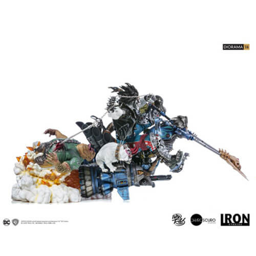 Sideshow and world-renowned comic book artist Ivan Reis showcase one of Iron Studios most detailed projects ever, including one amazing battle scene. We are proud to present the officially licensed DC Comics Lobo Sixth Scale Diorama. Lobo 1/6 Scale Diorama Statue