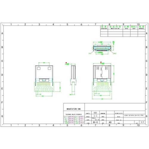 Quality gold plated Mini HDMI plug for PCB mounting.
