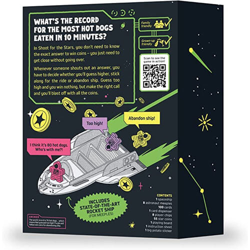 Shoot for the Stars is a party game where all the answers are numbers. You don't need to know the exact answer to win points - you just need to get close without going over.