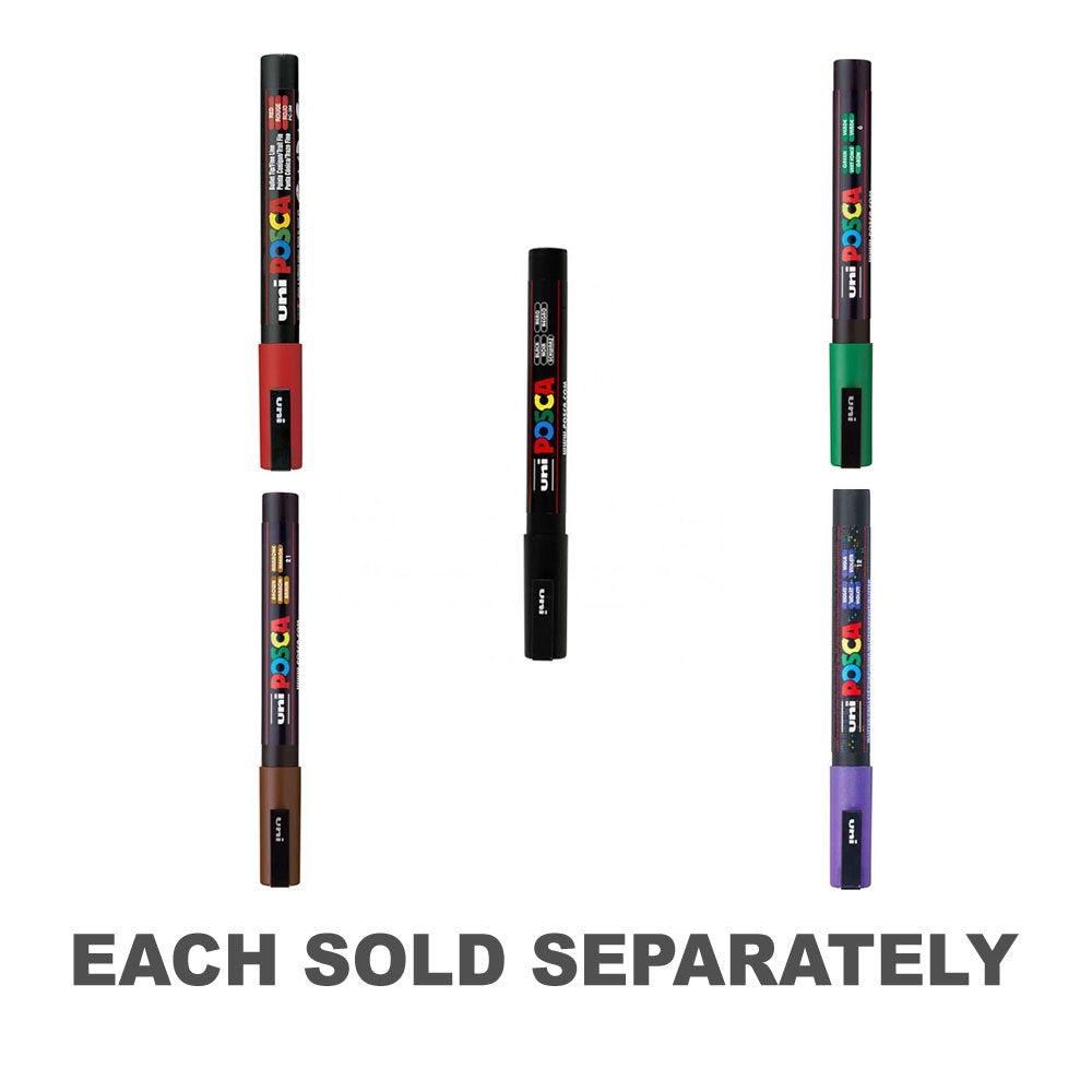 This POSCA Poster Marker has water-based pigments which can be blended when wet or overlaid when dry. It has a fine bullet tip which lets you draw lines that can be read from a distance. The ink produces opaque results that won't fade over time.