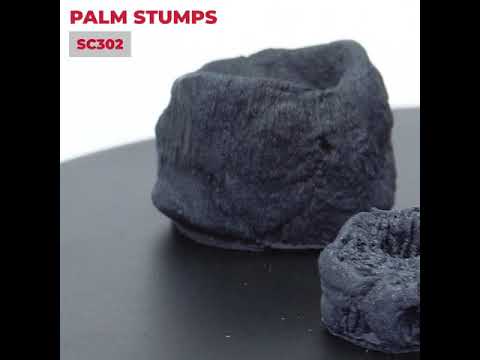- Five Mediterranean palm stumps in a variety of sizes and heights.