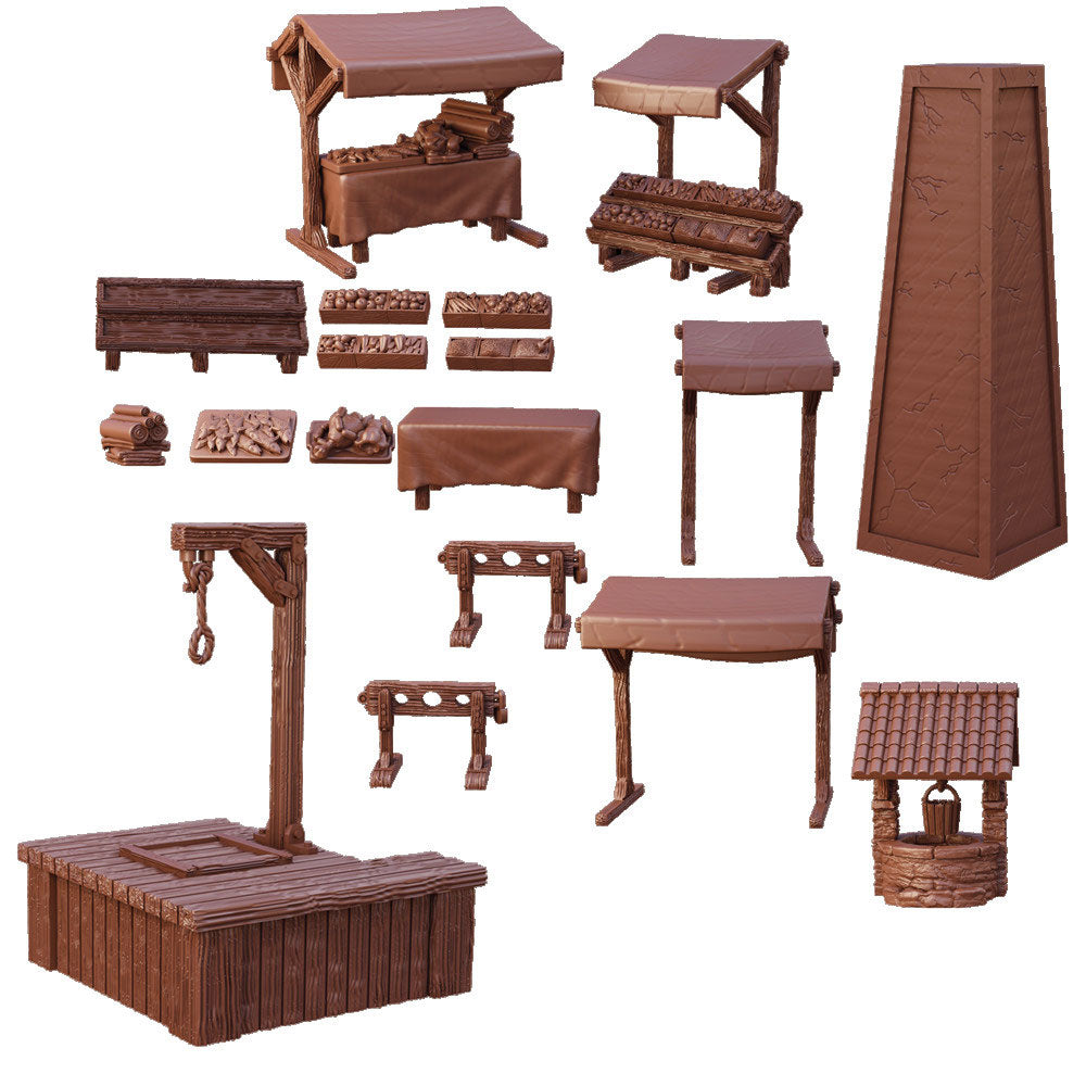 • 27 piezas de miniaturas previas al pueblo cuadrados