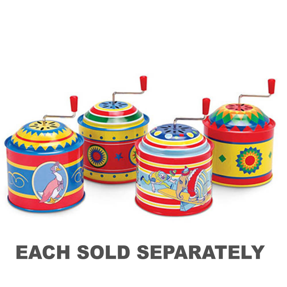 Tournez la poignée et écoutez une mélodie avec cette boîte de musique d'étain amusante. Ceci est un vieux classique avec une nouvelle torsion.
