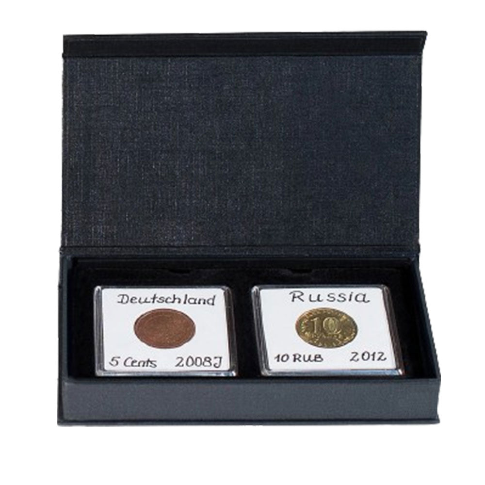 La boîte à air en velours noir (noir) - 2 quadrum est une solution de stockage sophistiquée conçue pour protéger et présenter vos pièces de collection. L'extérieur en velours noir ajoute non seulement une touche d'élégance, mais fournit également un logement doux et sécurisé pour vos précieuses capsules de pièces de monnaie quadrum. Spécifiquement fabriqués pour contenir 2 capsules de pièces quadrum, cette boîte à air assure un ajustement confortable, empêchant tout dommage potentiel aux pièces. Idéal pour les numismatistes et les collectionneurs, la boîte à air du phare combine un design élégant avec des fonctionnalités pour présenter et préserver vos pièces précieuses avec style.