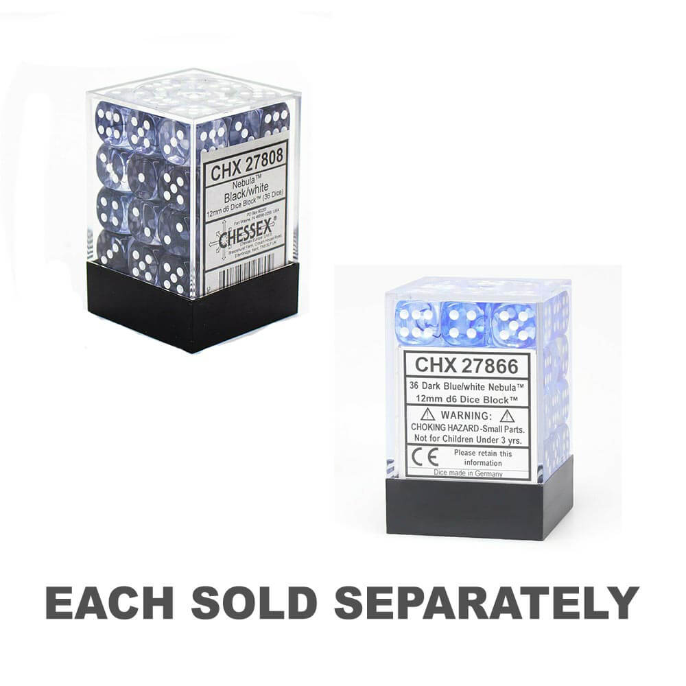 • Nebula 12mm D6 Chessex Dice Block (36 dadi) - nero con pips bianchi