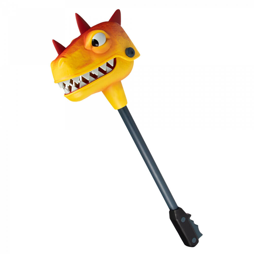 Progettata direttamente dalle risorse in-game della pelle epica per il piccone (aka strumento di raccolta), la replica a grandezza naturale di Bitemark è stata accuratamente scolpita e dipinta per un aspetto autentico, ed è alto circa 38 ". Lo strumento di raccolta di Bitemark è presente La testa di dinosauro selvaggiamente feroce su un bastone, simile ai classici giocattoli di snapper, e viene mostrato in imballaggi a tema Fortnite lucido premium.