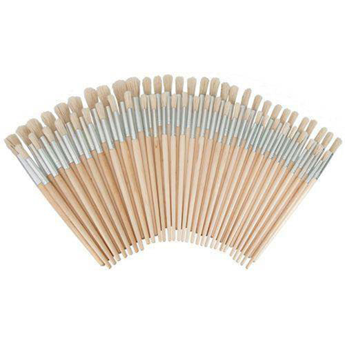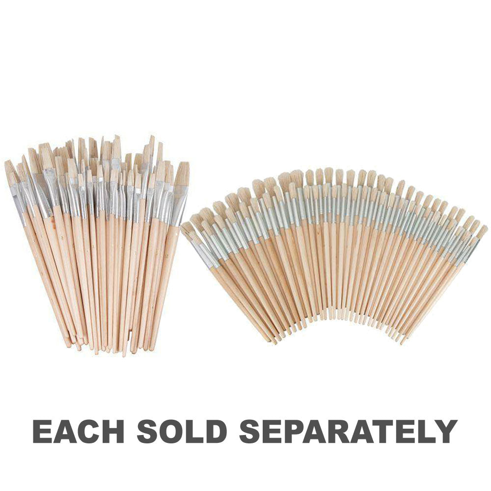 Hog hair brushes are ideal for acrylic, poster and oil paint. The natural filaments are coarse enough to hold lots of paint whilst applying the paint smoothly. Use a damp brush to minimise brush strokes. Flat brushes are great for filling in large areas and can be used on their narrow edge for greater control. Short handled brushes in an assortment of sizes, including 4, 6, 8, 9, 10 & 12 (10 of each) in one class pack.