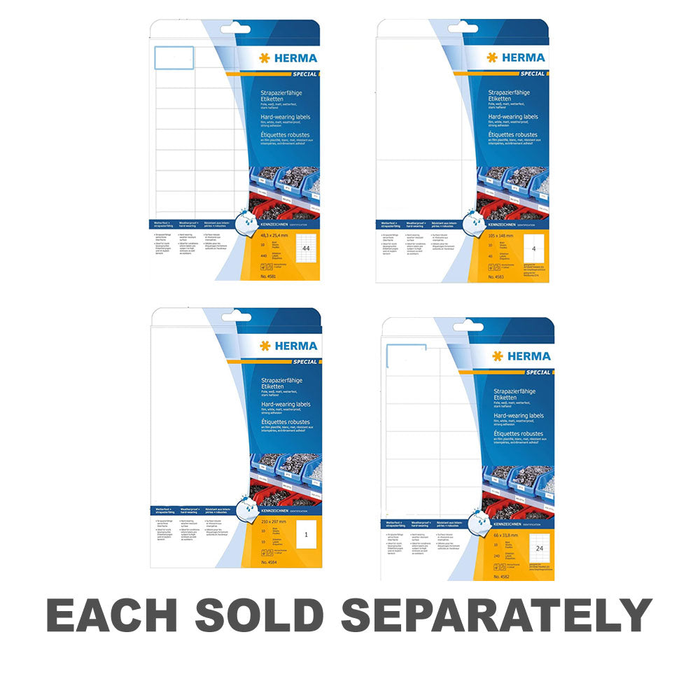 Herma Hard Wearing Labelsで耐久性と信頼性を確保してください!このパックには、困難な状態に耐え、明快さと読みやすさを維持するように設計された、白の10サイズのラベルが含まれています。強力な接着バッキングにより、これらの携帯を覚えているラベルはさまざまな表面にしっかりと接着し、長期にわたる愛着を確保します。産業環境、屋外アプリケーション、または過酷な条件のいずれであっても、これらの白いハードウェアラベルは、すべてのラベル付けのニーズにわたって回復力と効率性を提供します。 Herma Hard Wearing Labelsを使用して自信を持ってラベルを付ける準備をしてください!