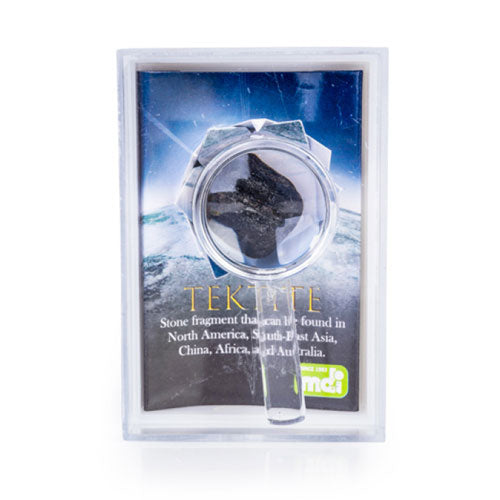 本物のTektiteフラグメント。虫眼鏡を含めて、間近で断片を調べることができます!