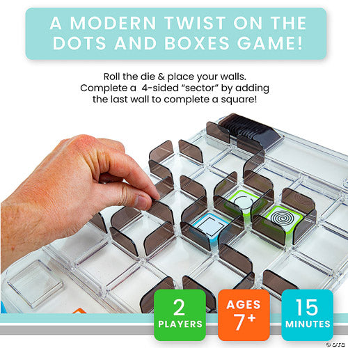 このモダンなボードゲームは簡単に学ぶことができますが、マスターするのに時間がかかります。ドットアンドスクエアゲームに基づいて、子供と親の両方が顔を合わせて楽しむでしょう。ターンごとに、ダイを転がして壁を置きます。最後の壁を配置して1x1の正方形を完成させることにより、4面の「セクター」を構築および請求します。対戦相手がセクターを請求するのをブロックしたり、幸運を手に入れたり、追加のアクションを提供する特別なタイルを描いたりしてください。 5つのセクターを連続してクレームし、Sectoriに勝ちました!それは常にエキサイティングな脳の挑戦です - それがあなたの4回目か40回目であろうと!