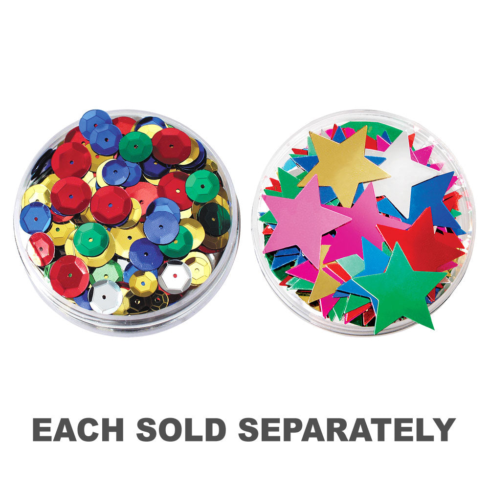 This assortment features brightly coloured, embossed round sequins in a range of sizes, adding a reflective finish to your artwork. Conveniently packed in a reusable clear storage jar, these sequins are perfect for adding a touch of sparkle and texture to your creative projects.