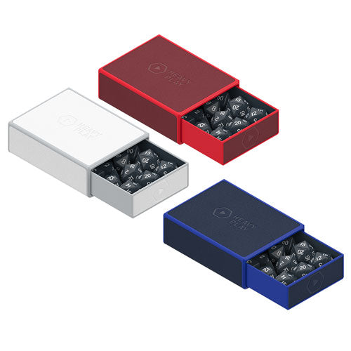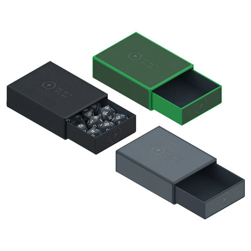 The ultimate dice box. Fits 4x D20 spindowns, a full set of 7x RPG dice, and a bunch of extra D6's or tokens. Magnetic tray slides out and pops on top for easy dice access during gameplay. Durable vegan leather exterior. Soft microfiber lining to dampen rattling.