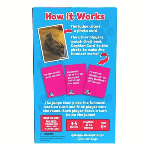 • Wordt geleverd met hilarische dubbelzijdige fotokaarten en de grappigste bijschriftkaart.