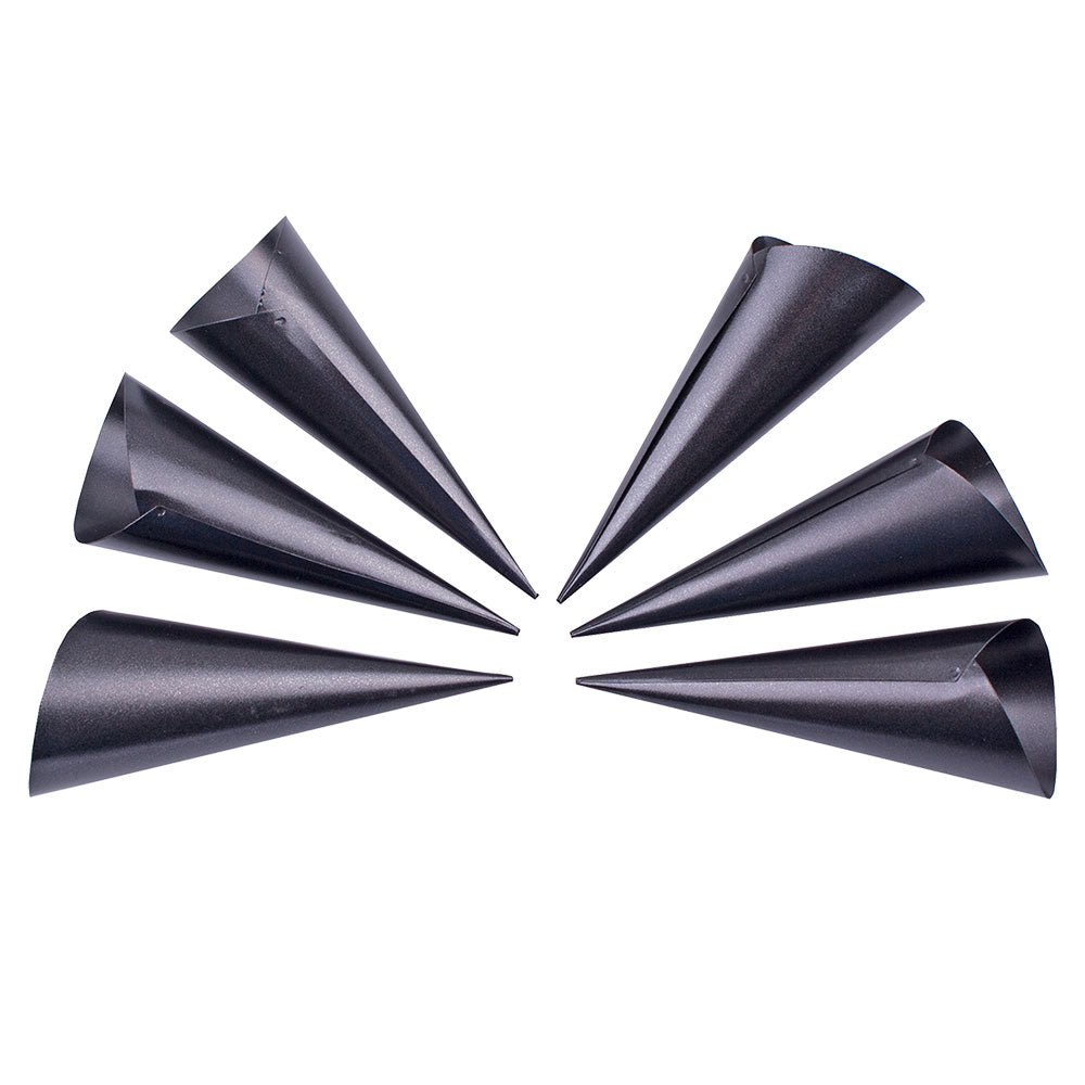 Appetito Cream Horns (sett med seks) vil hjelpe deg med å lage fancy kaker enkelt. Non-stick (for enkel rengjøring) og stabelbar, disse kremhornformene er et must for enhver spirende kokk som ønsker å piske opp den perfekte desserten for en spesiell anledning.