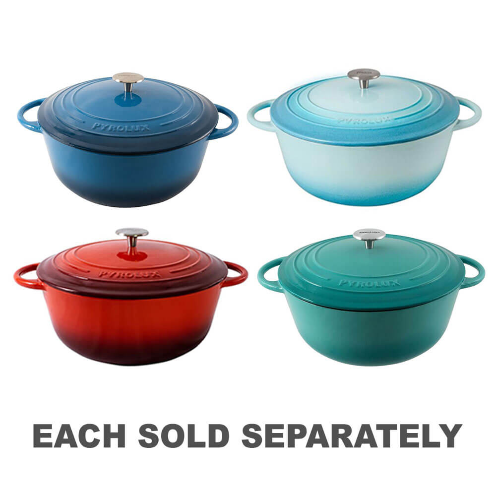 Żelazna zapiekanka Pyrolux Pyrochef to lekka zapiekanka, o 40 procent lżejsza niż tradycyjna żeliwa. Może być stosowany na dowolnym źródle ciepła, w tym indukcji. Z 3 -warstwową emaliowaną powłoką wewnętrznie i zewnętrznie, ta patelnia jest łatwa w pielęgnacji i wyjątkowo trwała. Średnica: 28 cm. Pojemność: 6 litrów.
