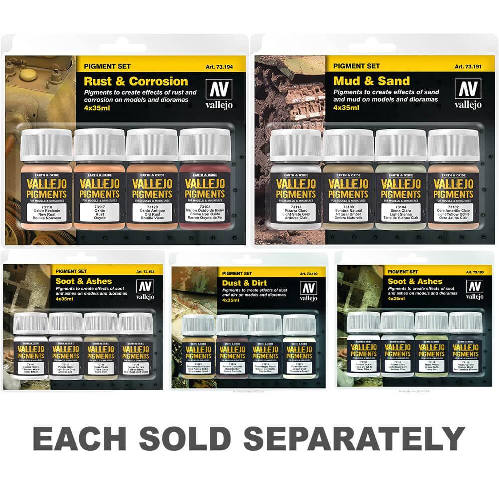 - Pigmenty Vallejo, wybór naturalnej ziemi i pigmentów syntetycznych.