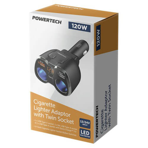Cette unité convertit la prise plus légère de votre voiture en double prise de cigarettes avec 1 x USB une prise 2,4amp et 1 x USB C 1 x USB A Qualcomm 3.0 Charge de charge. L'écran LED embarqué montre également la tension de courant de la prise de cigarettes dans laquelle elle est branchée. Les interrupteurs intégrés vous permettent de mettre ou de désactiver individuellement les prises de cigarette sur l'adaptateur sur l'adaptateur.