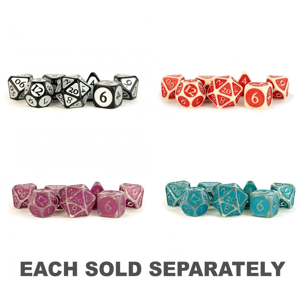 Chaque ensemble est moulé en acrylique puis soigneusement rempli de belle peinture émaillée. Nous vous recommandons de rouler tous les dés en métal sur des surfaces rembourrées comme des plateaux en dés rembourrés.