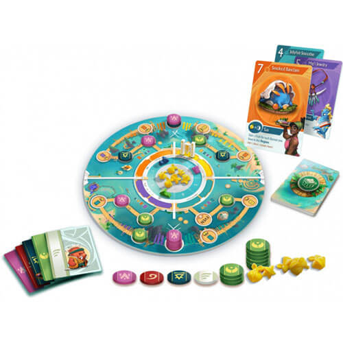 Chaque tour, visez à jouer la carte de marchandise la plus élevée, moyenne ou la plus basse pour débloquer différentes actions.