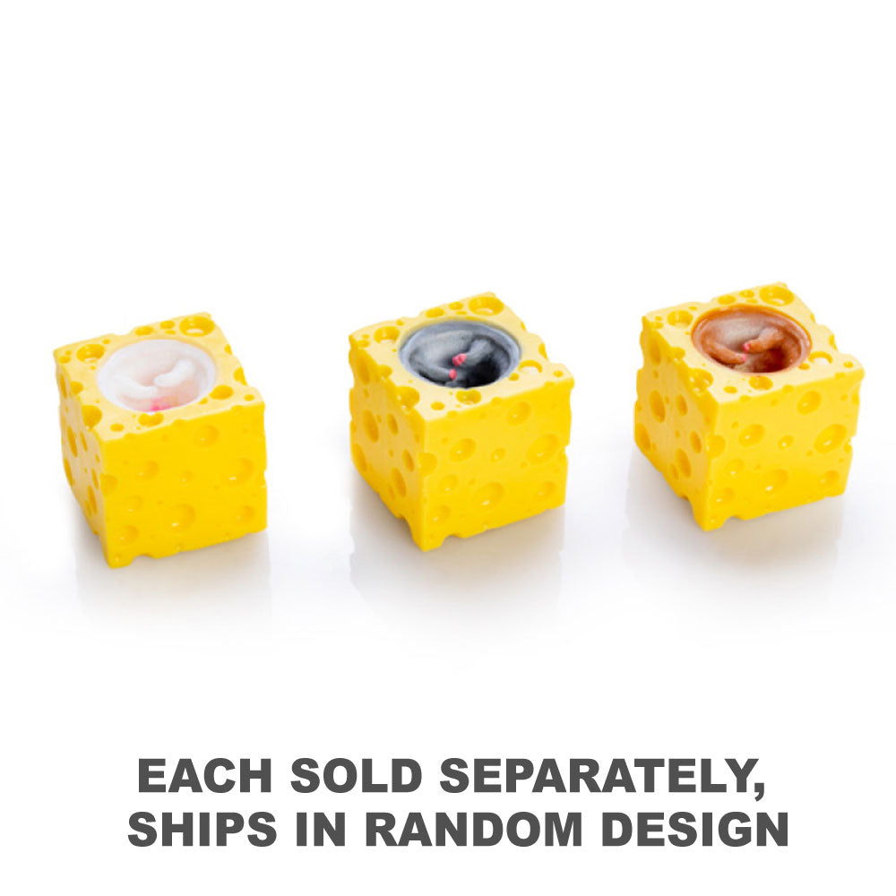 Pressez le fromage pour une adorable surprise! Cube de fromage tactile, idéal pour agiter les mains et une jolie petite souris pour une expérience sensorielle visuelle. Les souris peuvent varier de 3 couleurs: blanc, gris et marron