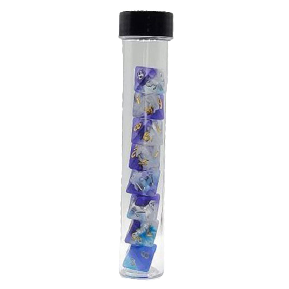 • Les dés comprennent des tourbillons bleus et blancs avec une main en métal tendant la main pour aider!
