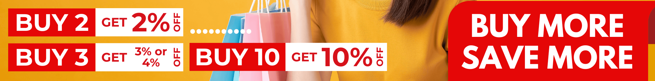 Economize mais a cada compra! Receba 2% de desconto para cada item adicional que você compra (até 10% de desconto em 6 itens e mais) ou aproveite 1% para cada item adicional que você compra (até 10% de desconto por 10 itens e mais). Quanto mais você compra, mais você salva!