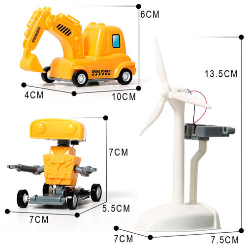 - Este kit vem com a capacidade de construir um carro, um robô ou um moinho de vento, todos impulsionados pela salmoura!