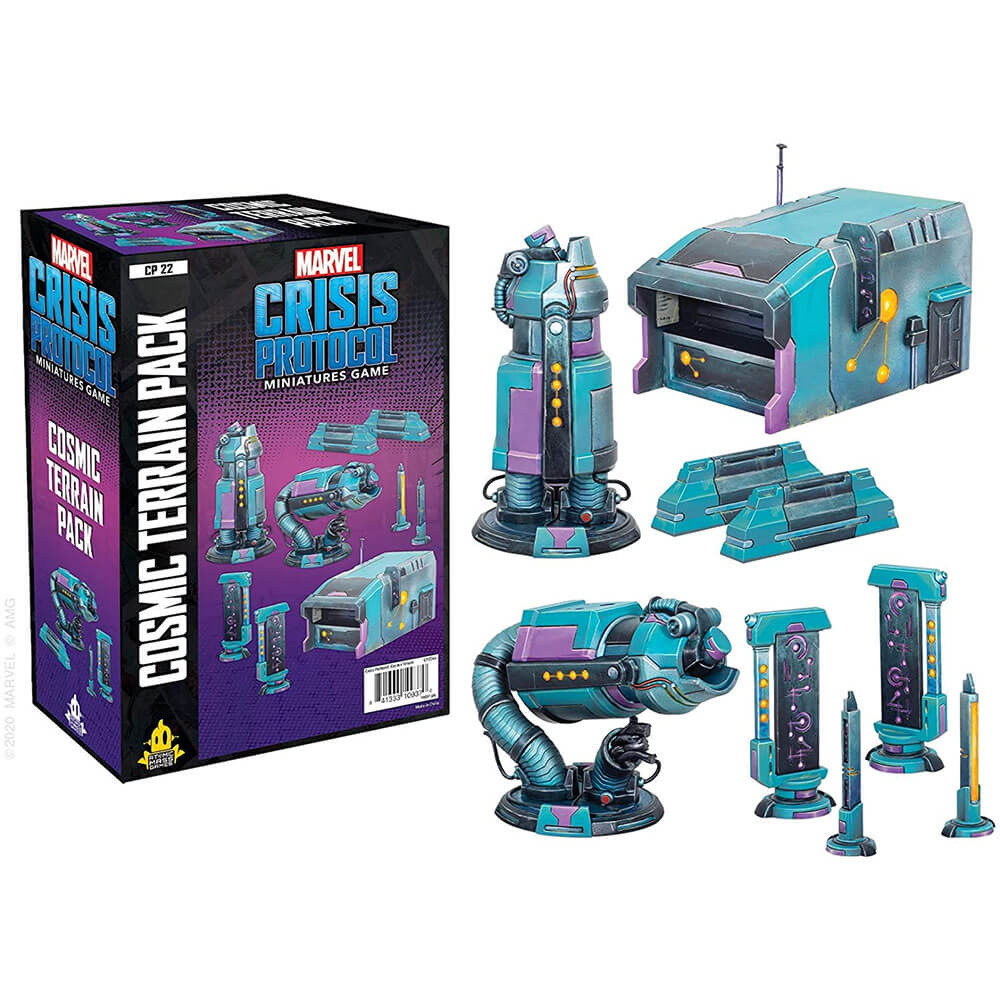 Tome sua maravilha: batalhas de protocolo de crise para novos mundos com o pacote de terrenos cósmicos. Este pacote inclui uma série de terrenos em miniaturas altamente detalhados, para que você possa criar a paisagem cósmica perfeita para seus confrontos superpoderosos nos mundos galácticos do universo da Marvel.