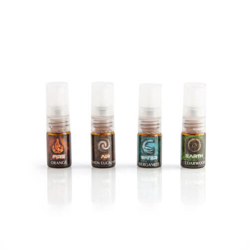 • 4 Misturas de elementos e óleo essencial: Fogo/laranja, água/bergamota, eucalipto de ar/limão, Terra/Cedarwood.