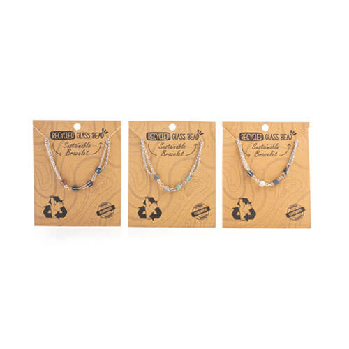 Pulseira de corrente de prata elegante e artesanal. Acentuado com lindas contas de vidro reciclado. Listagem é apenas para 1 item