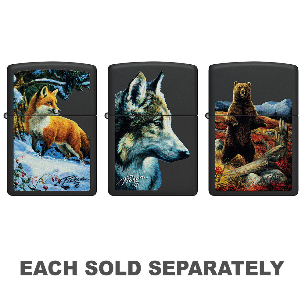 Zippo Linda Picken Wolf O isqueiro é o isqueiro à prova de vento com zippo distinto "Click". Construção All-Metal; O design à prova de vento funciona praticamente em qualquer lugar. Vem embalado em uma caixa de presente. Para um desempenho ideal, preencha com combustível mais leve zippo.