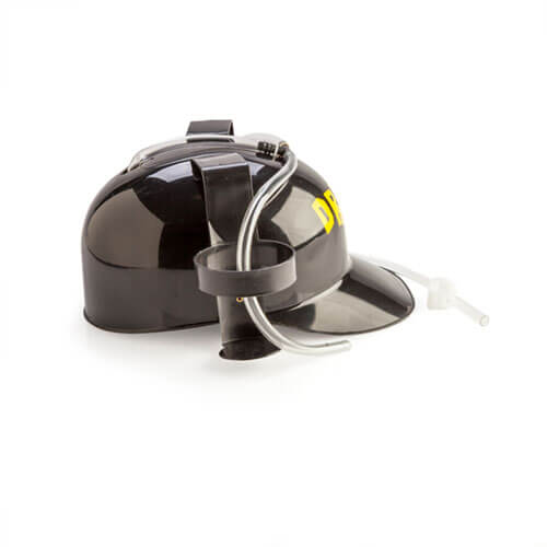 - Svart ölhjälm med ljusgul "berusad AF" -tryck