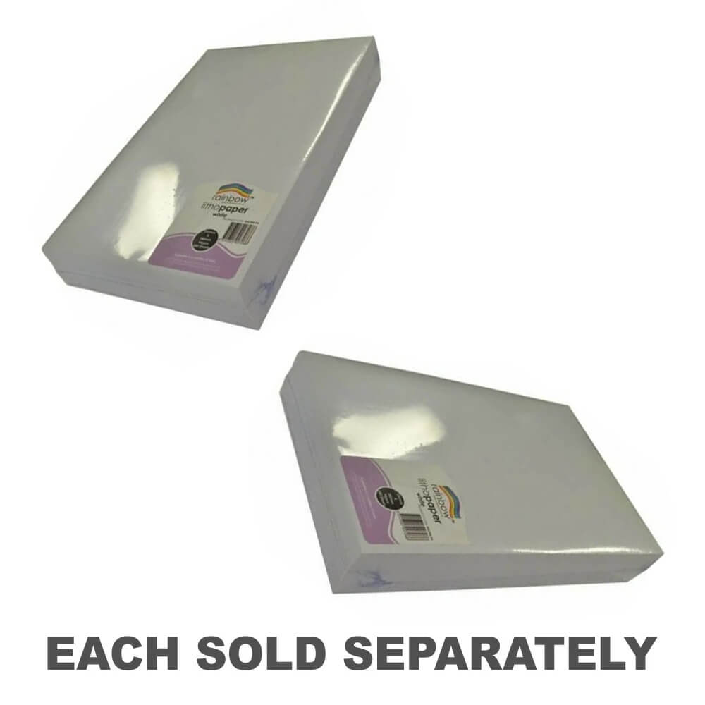 Rainbow Litho Paper är ett lätt papper i både 60 och 94GSM i ett antal packtyper. Den har en slät blank yta för tryckning och en strukturerad yta på baksidan för ritning. Denna produkt kan också användas för pappersmodellering. Rainbow Litho Paper är ett multipurpose -papper av god kvalitet som är överkomligt och perfekt för hem, kontor och klassrummet.