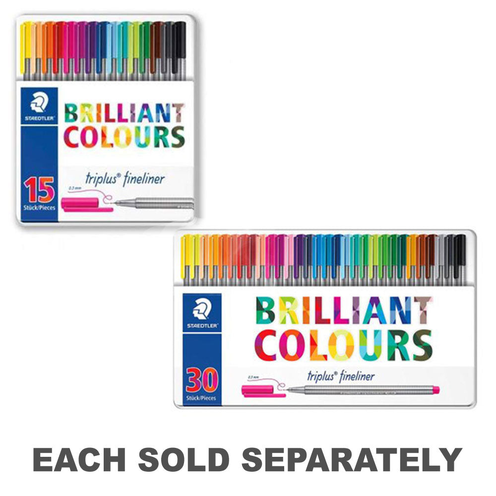 Triplus Fineliner "Brilliant Colors", förstärkt metallspets med 0,3 mm linje. Metallbox. Triangulär ergonomisk fat för enkel skrivning. Dry Safe - kan förbli oöverträffad i flera dagar och torkar inte ut. Vattenbaserad bläck, tvättbar från de flesta tyger.
